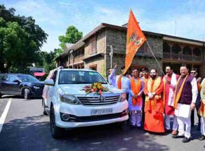 मुख्यमंत्री पुष्कर सिंह धामी ने शुक्रवार को मुख्यमंत्री आवास देहरादून से कुशीनगर जनपद में भगवान सूर्य की मूर्ति के जलाभिषेक के लिए कलश यात्रा का फ्लैग ऑफ किया।
