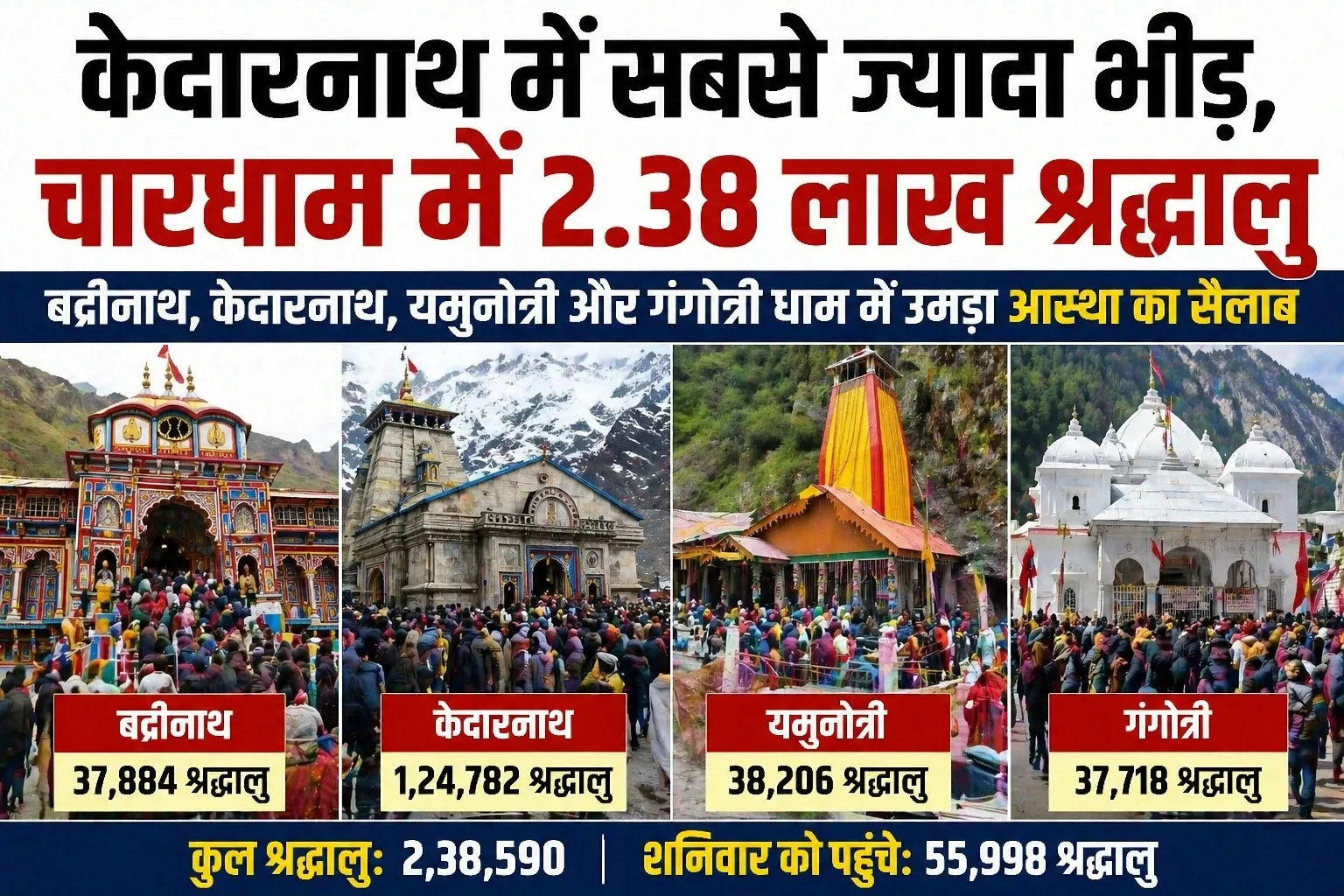 चार धाम में पहुंचे 2.38 लाख से अधिक श्रद्धालु