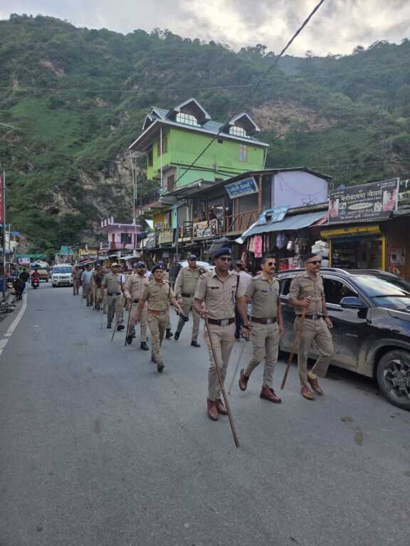 त्रि-स्तरीय पंचायत निर्वाचन को सकुशल सम्पन्न कराने के लिए पुलिस ने किया फ्लैग मार्च