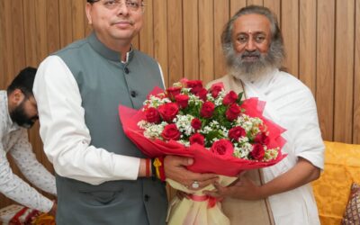 सीएम पुष्कर सिंह धामी ने ऋषिकेश में श्रीश्री रविशंकर से मुलाकात की