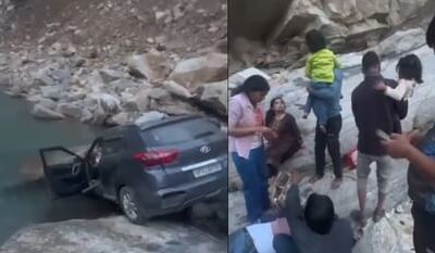 रुद्रप्रयाग-गौरीकुंड हाईवे पर हादसा: पत्थर की चपेट में आकर नदी में गिरी कार, एक की मौत, बच्ची समेत पांच घायल